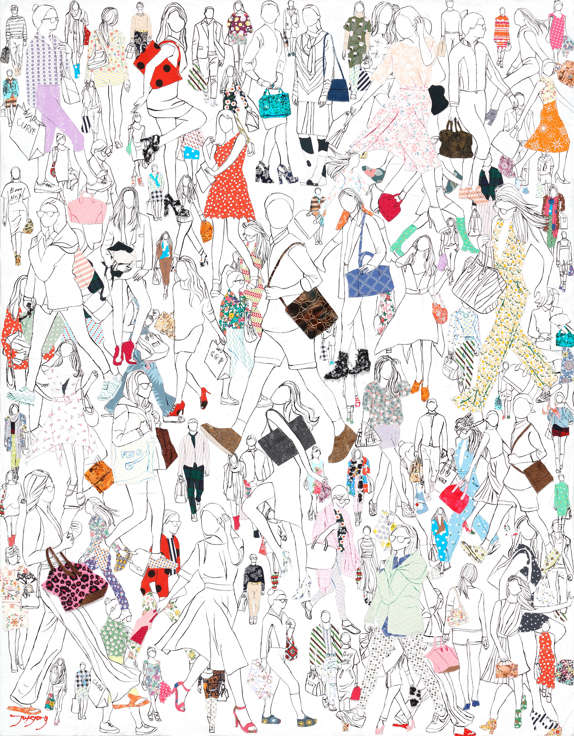 Acrylic and fabric collage
