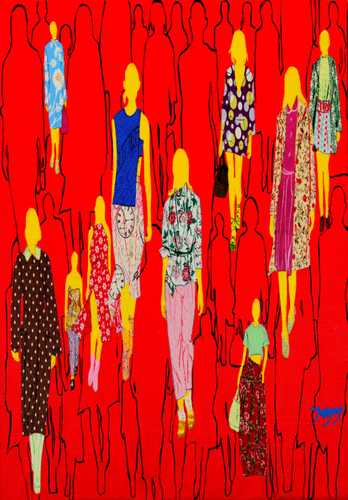 Acrylic and fabric collage on canvas