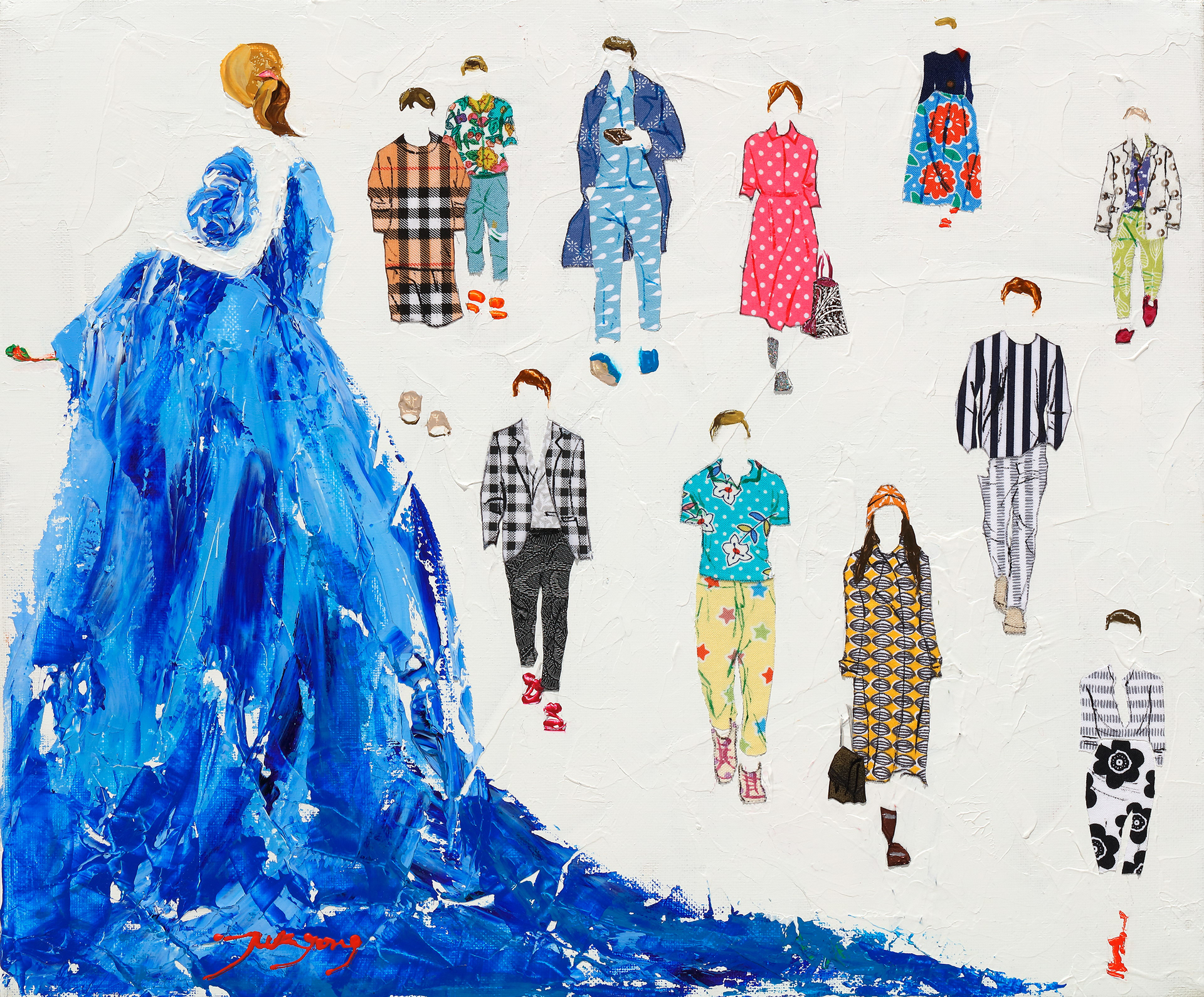 Acrylic and fabric collage
