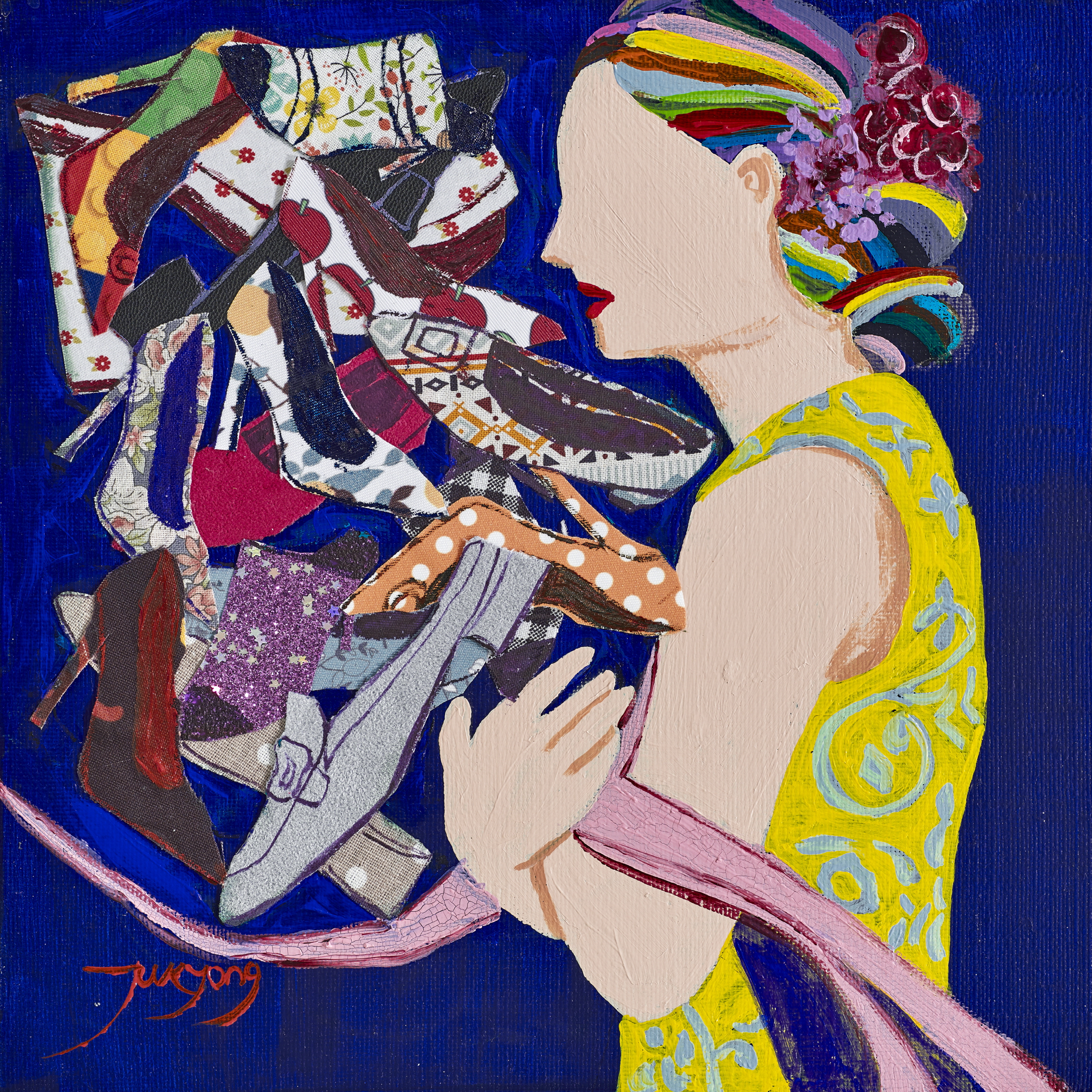 Acrylic and fabric collage on canvas