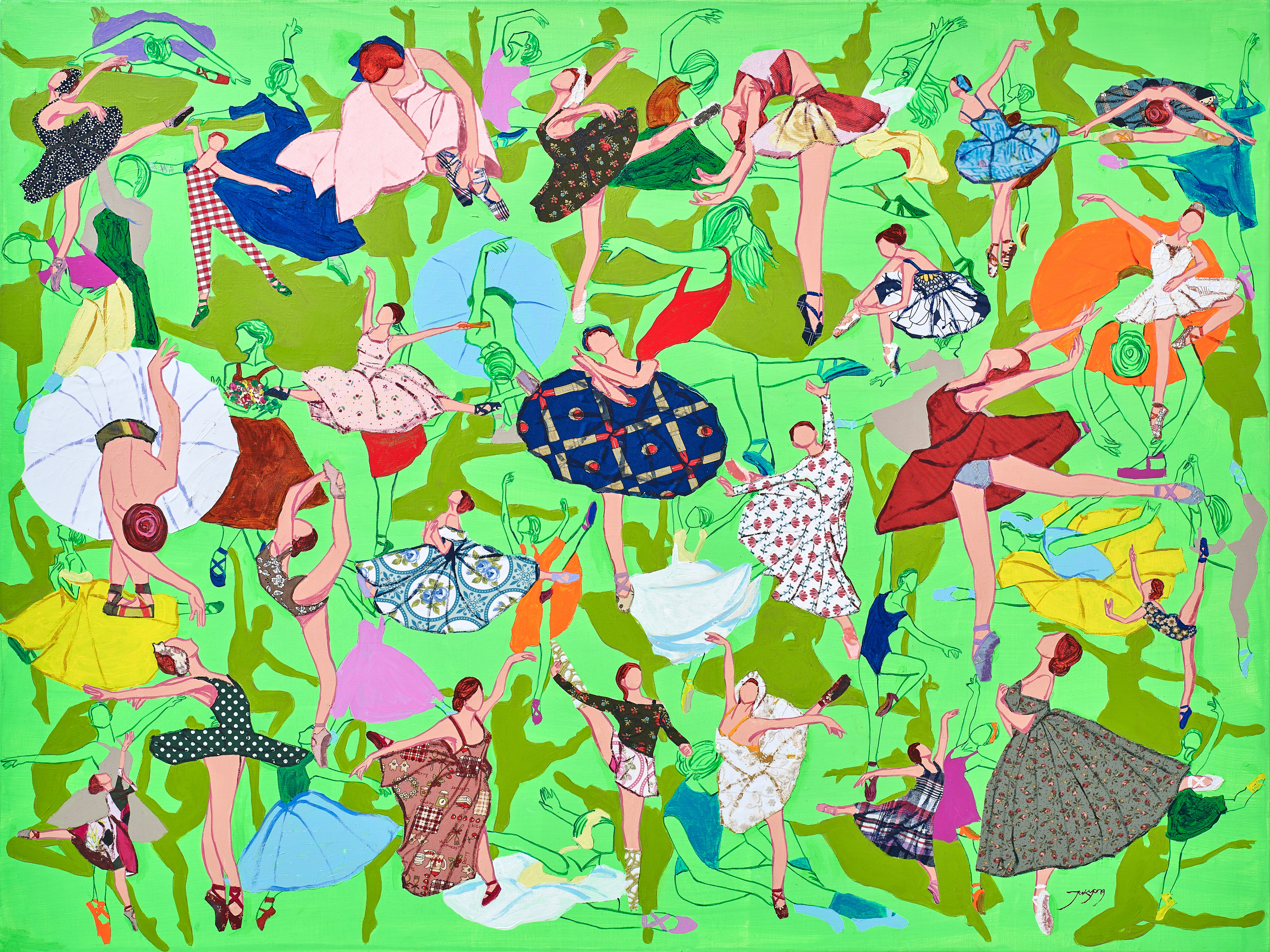 Acrylic and fabric collage on canvas